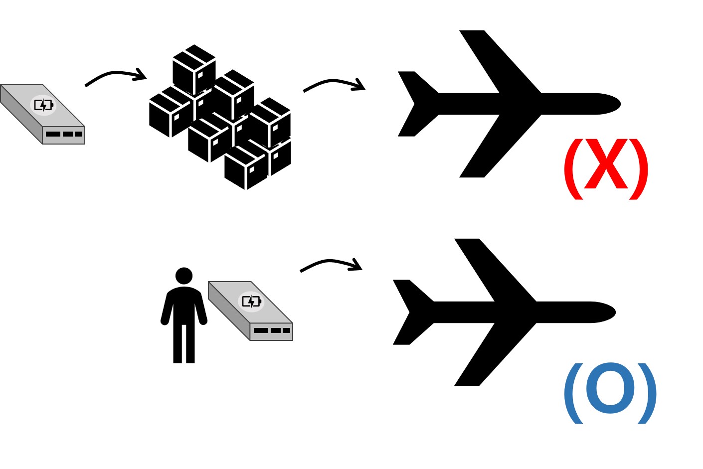 그렇기 때문에 모든 항공사에서 위탁수하물에 보조배터리를 싣는 것을 금지하고 있다.