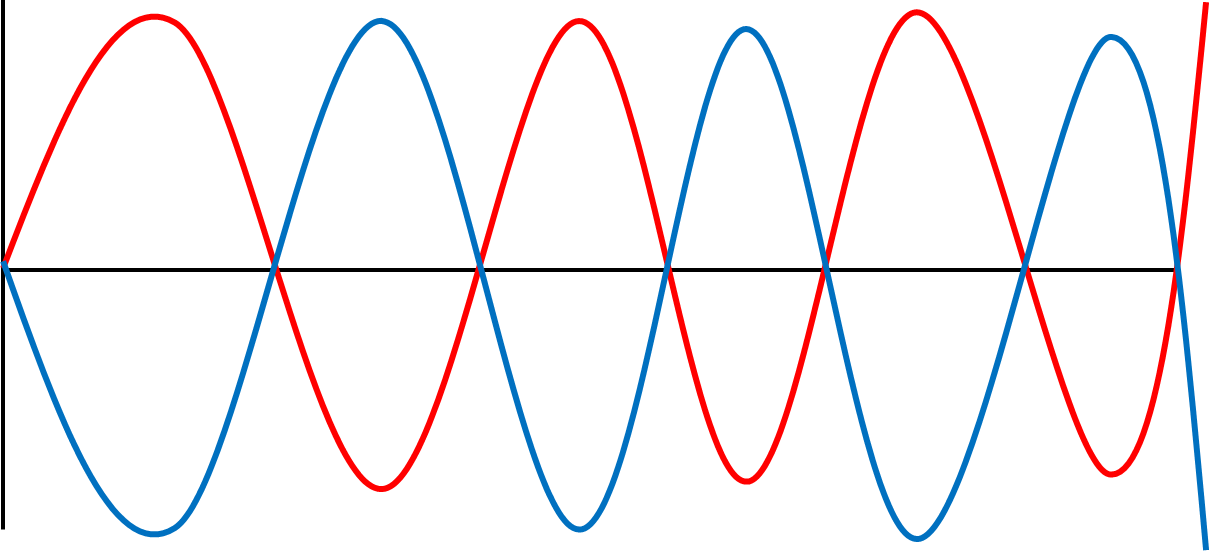 이때 다음 그림과 같이 위 소리의 정반대 위상인 '역위상'을 만들어 낸다면 어떻게 될까?