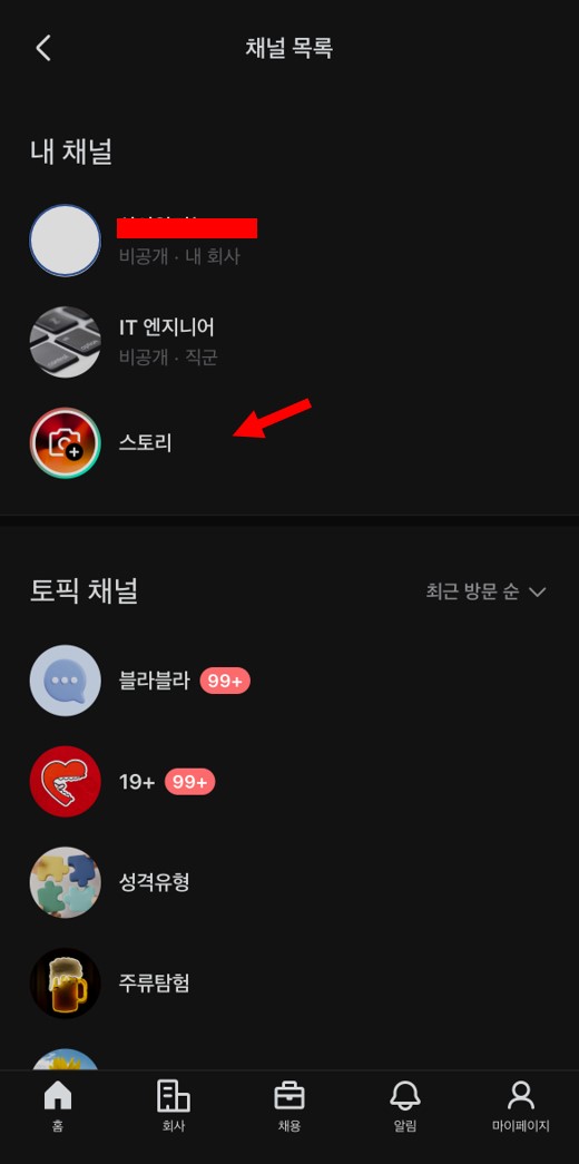 블라인드 앱에서 스토리를 확인할 수 있는 방법은 다음과 같다.