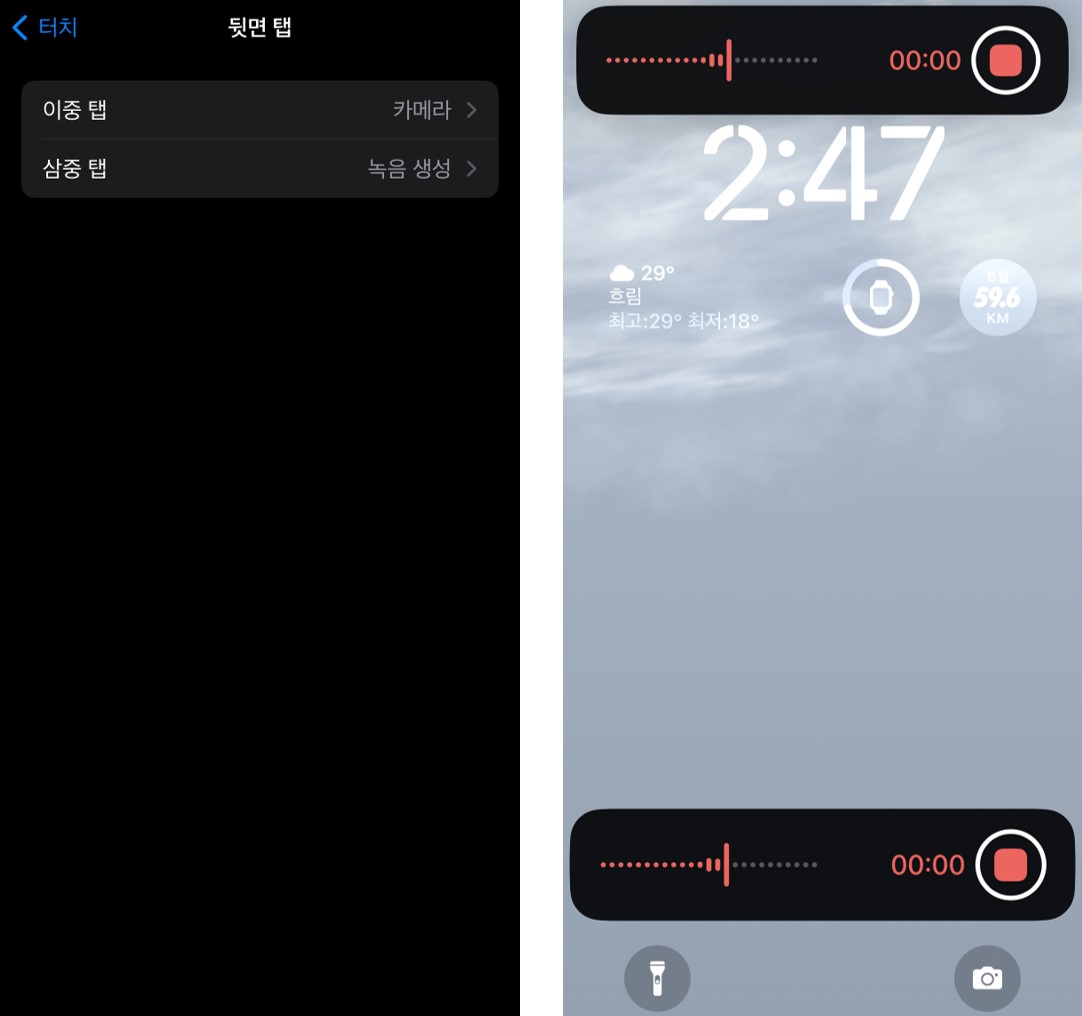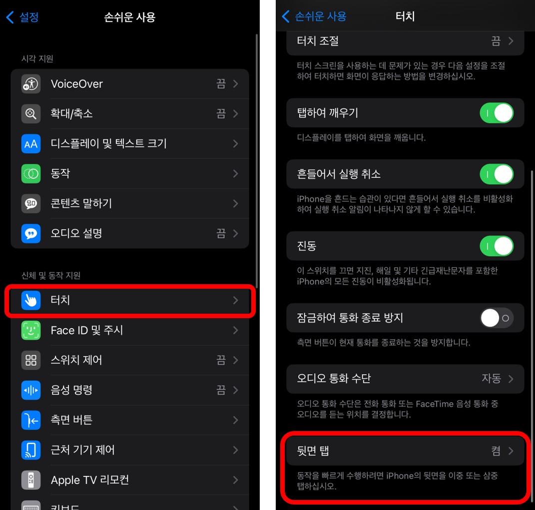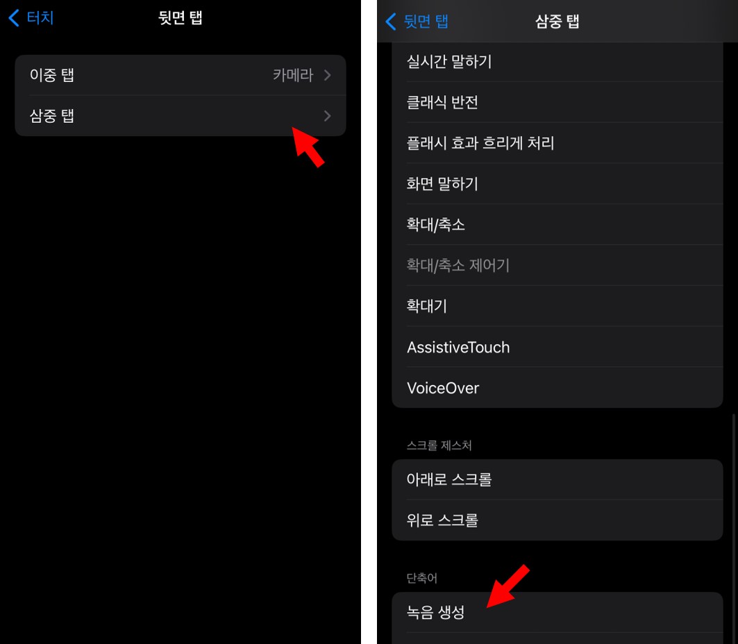아이폰 뒷면 탭 녹음 설정