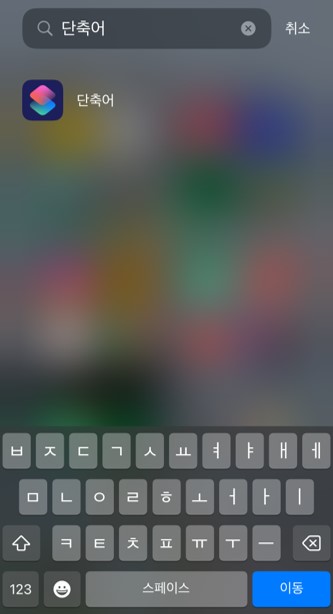 아이폰 기본 앱으로 설치되어 있는 '단축어'를 검색하여 실행시켜 준다.