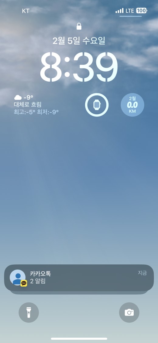 이렇게 표시되는 이유는 카톡이나 문자, SNS 앱의 알림이 언제나 표시되도록 아이폰에서 설정되었기 때문이다.