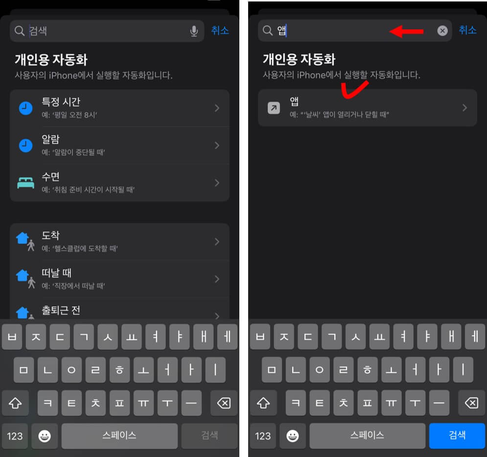 1. 단축어 실행 및 자동화 선택