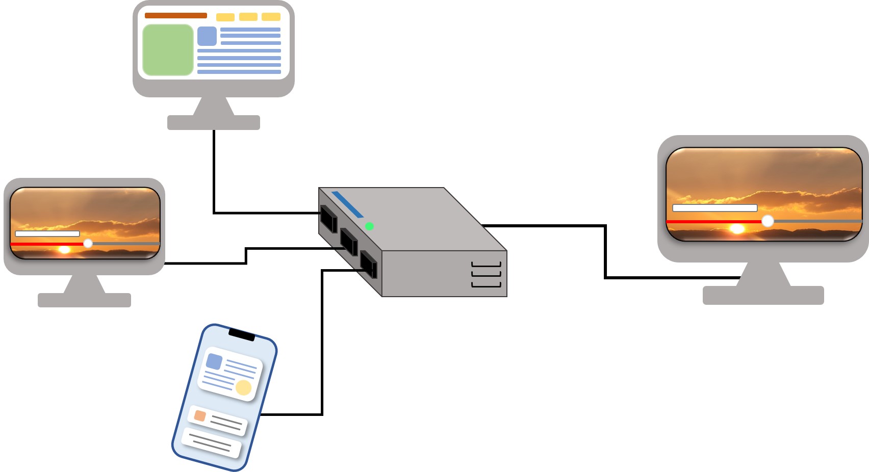 HDMI 분배기를 사용하면 여러 화면에 동일한 영상을 출력할 수 있어 병원의 대기실이나 콘서트 화면 같은 대규모 시설에서 많이 사용되는 장치이다.