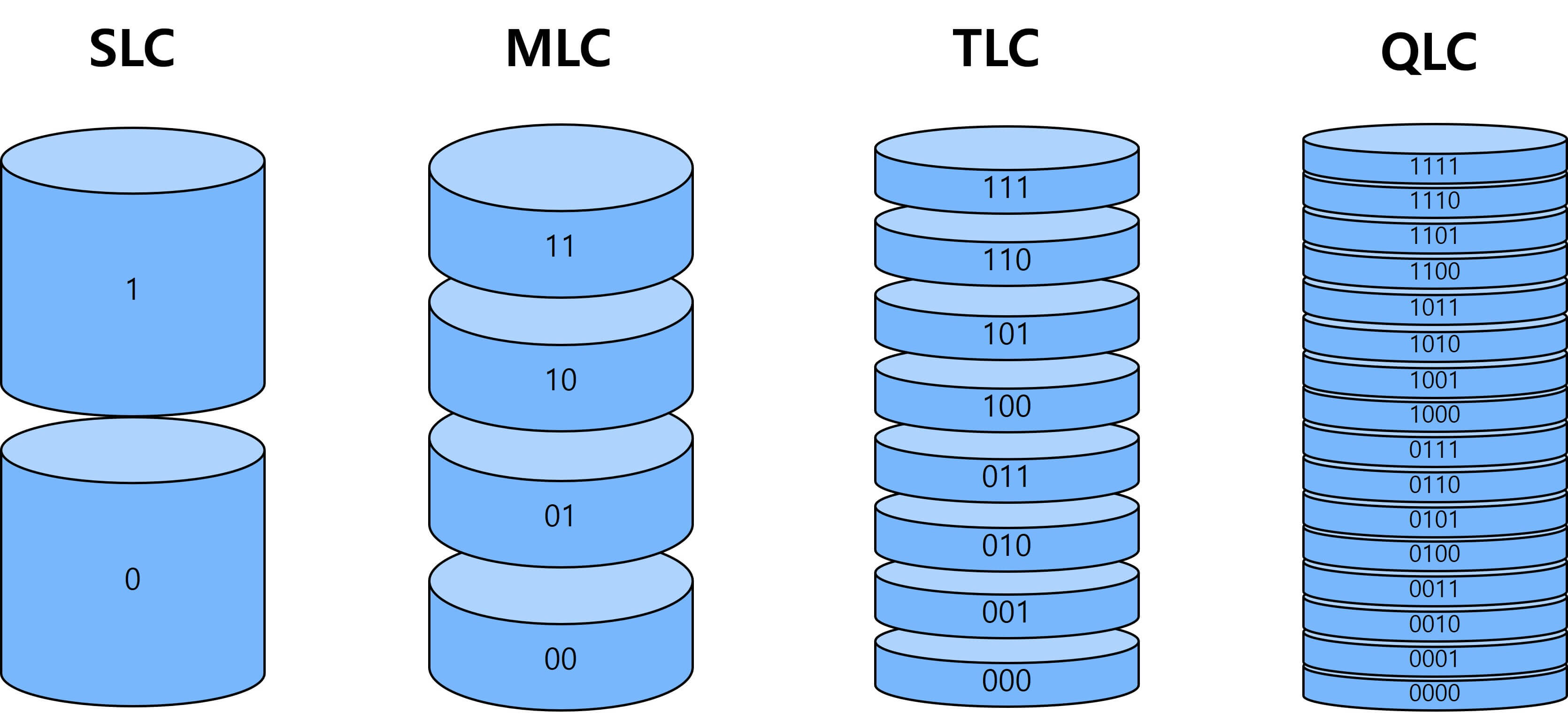 SLC가 가장 좋은 것은 사실이지만 비용이 가장 높기 때문에 항상 SLC만을 선택해야 하는 것은 아니다. 저장창지의 사용환경과 용도에 따라 MCL, TLC, QLC가 더 나은 선택일 수 있기 때문이다.